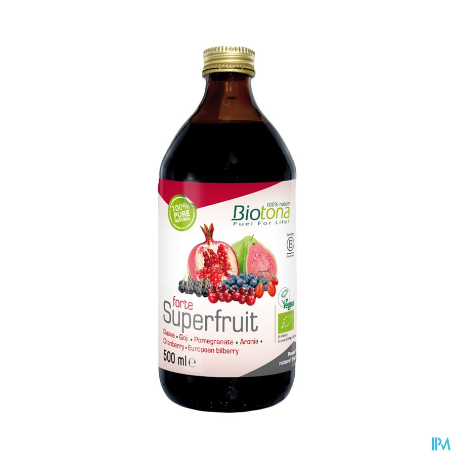 Biotona Bio Superfruit forte est un cocktail de différents superjus (concentrés).
