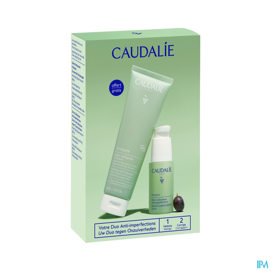 Le coffret Caudalie Vinopure Sérum 30 ml + GEL Nettoyant Purifiant 150 ml OFFERT est une routine duo pratique pour les peaux qui brillent facilement, présentent des imperfections ou des pores visibles. Le sérum cible efficacement boutons et points noirs, tandis que le gel nettoyant maintient la peau propre au quotidien sans sensation de tiraillement.