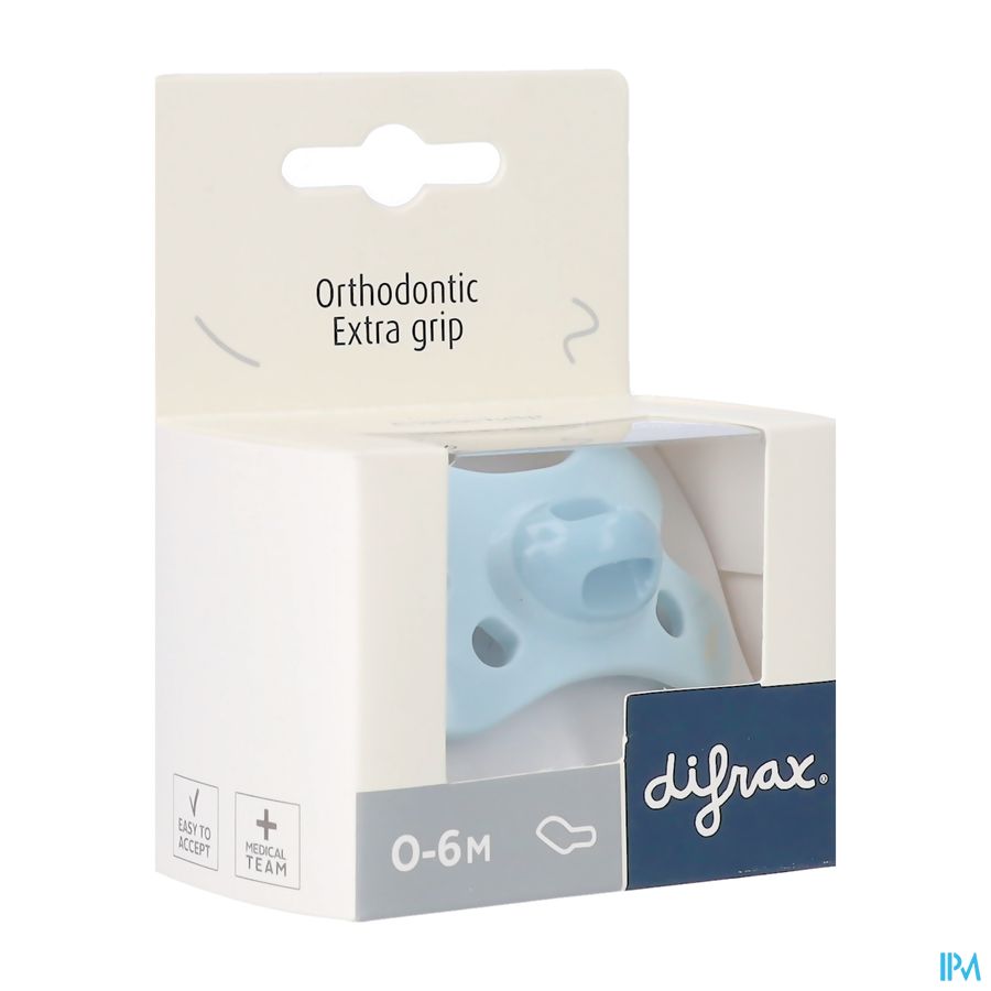 La tétine Difrax Dental 0-6 mois a été spécialement conçue pour les bébés de 0 à 6 mois. La partie souple en silicone présente un côté bombé et un côté plat. Les enfants peuvent ainsi mieux la saisir et la garder dans leur bouche.